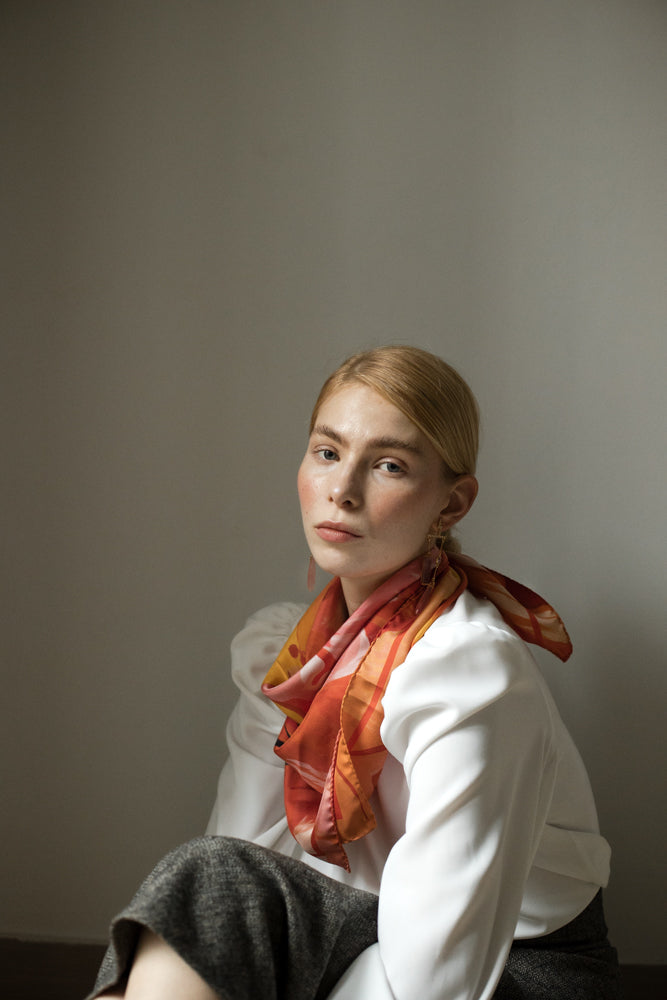 Esta colección de pañuelos nace de la colaboración con la artista Lulu Figueroa y de su mirada a la naturaleza y a la belleza de lo cotidiano.